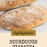 This sourdough ciabatta bread is light, chewy, and full of airy holes with a crisp crust. Perfect for sandwiches or dipping, made with active sourdough starter.